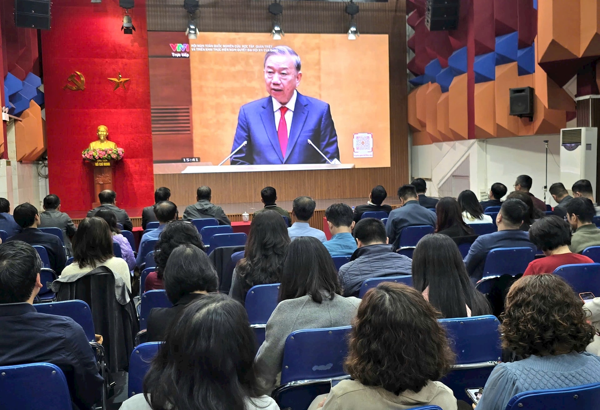 Cán bộ, đảng viên Cơ quan Báo và Phát thanh, Truyền hình Hà Nội tham gia học tập, quán triệt Nghị quyết Đại hội lần thứ XIV của Đảng. Ảnh: PV