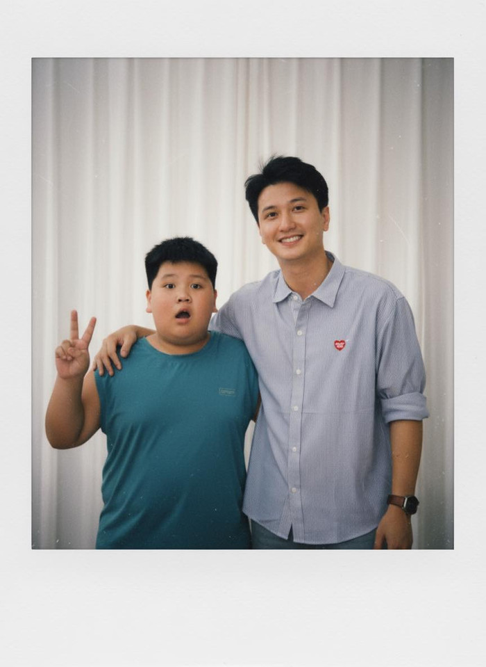 Trong ảnh, Huỳnh Anh hiện tại – cao ráo, rạng rỡ và phong độ – khoác vai một cậu bé tròn trịa, mái tóc dày và gương mặt ngơ ngác đáng yêu. Nhiều khán giả nhanh chóng nhận ra cậu bé chính là hình ảnh Huỳnh Anh thời bé, khác biệt hoàn toàn với ngoại hình hiện tại của nam diễn viên.