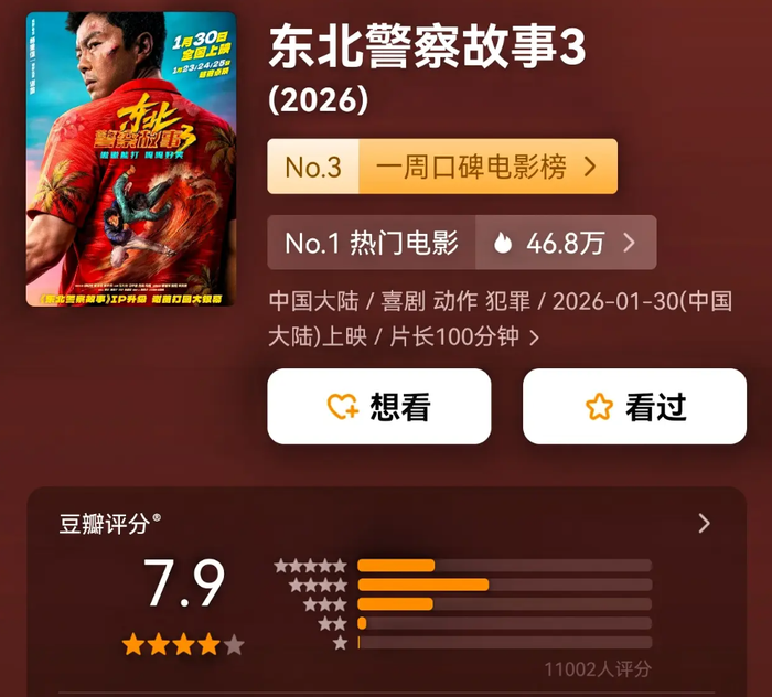 Douban hiển thị điểm 7.9 cho Đông Bắc Cảnh Sát Cố Sự 3