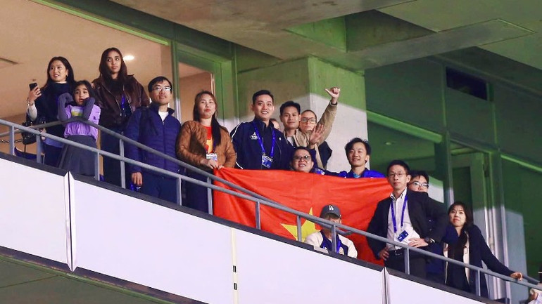 Điều đặc biệt trong trận đấu này không chỉ nằm ở màn trình diễn trên sân, mà còn ở không khí cuồng nhiệt đến từ khán đài. Hàng trăm cổ động viên Việt Nam - trong đó có nhiều người đến từ Osaka, Kyoto, Kobe và các tỉnh lân cận - đã tới sân cổ vũ, mang theo cờ đỏ sao vàng và các băng-rôn động viên đội bóng quê hương. Tiếng hò reo “Nam Định cố lên!” vang vọng khắp khán đài, tạo nên bầu không khí đầy tự hào và xúc động tại Osaka, Nhật Bản.