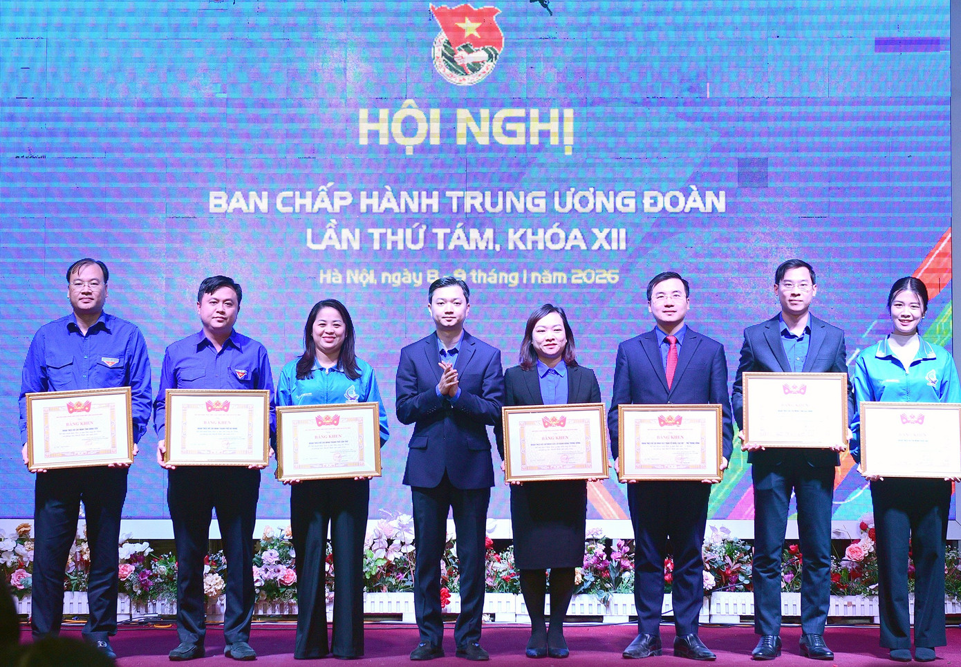 Anh Nguyễn Tường Lâm trao Bằng khen T.Ư Đoàn cho các đơn vị có thành tích xuất sắc năm 2025
