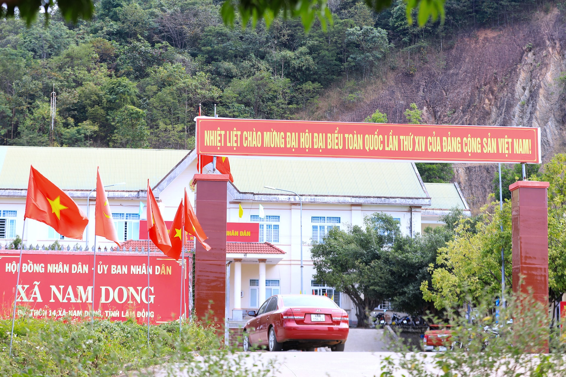 Trụ sở HĐND - UBND xã Nam Dong rực rỡ cờ hoa những ngày đầu năm 2026