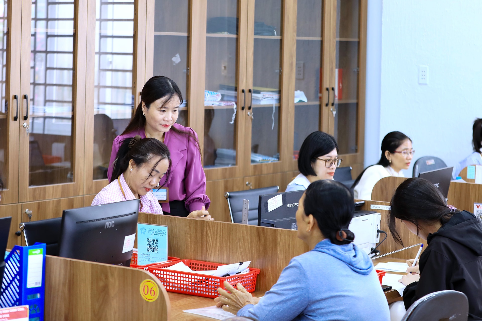 Sự đổi mới không chỉ ở cơ sở vật chất mà còn ở tư duy phục vụ. Tại các quầy giao dịch, thủ tục hành chính được niêm yết công khai, tích hợp mã QR để người dân dễ dàng tra cứu bằng điện thoại thông minh. Việc minh bạch quy trình, thành phần hồ sơ giúp hạn chế thiếu sót, rút ngắn thời gian xử lý.