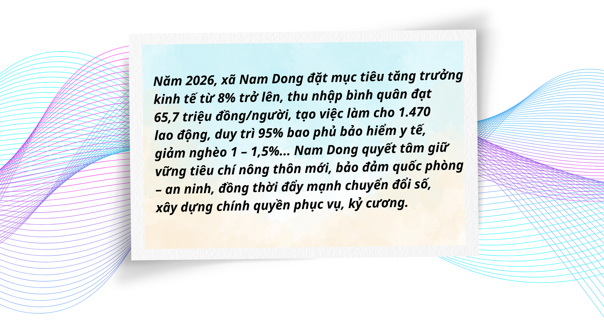 Trong bối cảnh còn nhiều khó khăn, Đảng ủy, HĐND và UBND xã luôn xác định rõ tinh thần “mục tiêu kép”: ổn định tổ chức bộ máy sau sắp xếp, sáp nhập và tập trung thúc đẩy phát triển kinh tế – xã hội, bảo đảm quốc phòng – an ninh.