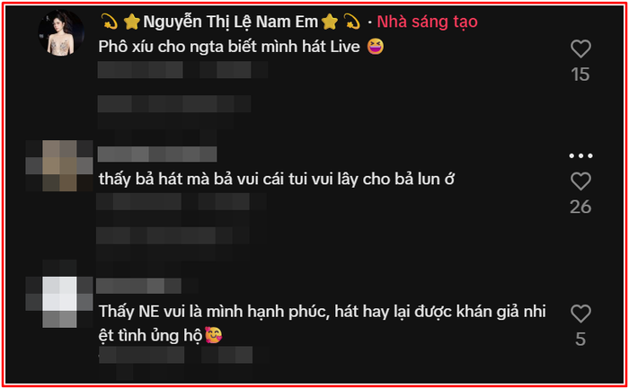 Tuy nhiên, trong lúc trình diễn hết mình, Nam Em bất ngờ gặp sự cố vỡ giọng ở câu hát cuối. Do vừa hát vừa nhảy liên tục, cô không giữ được hơi thở ổn định khiến giọng bị phô rõ rệt. Dù vậy, thay vì né tránh hay xóa video, Nam Em lại tỏ ra vô cùng thoải mái. Dưới phần bình luận, cô tự nhận sự cố một cách hóm hỉnh: "Phô xíu cho người ta biết mình hát live".