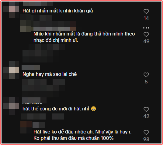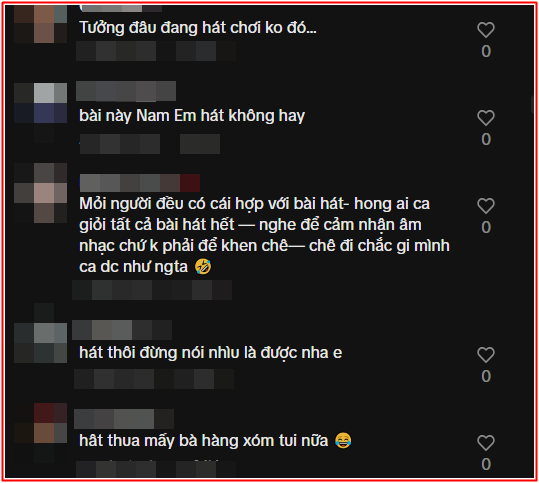 Bên cạnh đó, nhiều cư dân mạng cũng nhận xét lối hát của Nam Em chưa phù hợp với bài hát. Một số bình luận cho rằng cách xử lý, nốt phiêu của Nam Em khá cũ kỹ, khuyên cô nên dành thời gian trau dồi thêm về kỹ thuật thanh nhạc thay vì trình diễn dựa vào cảm xúc nhất thời, bởi việc thiếu ổn định có thể khiến màn biểu diễn không đạt được hiệu quả như mong muốn.