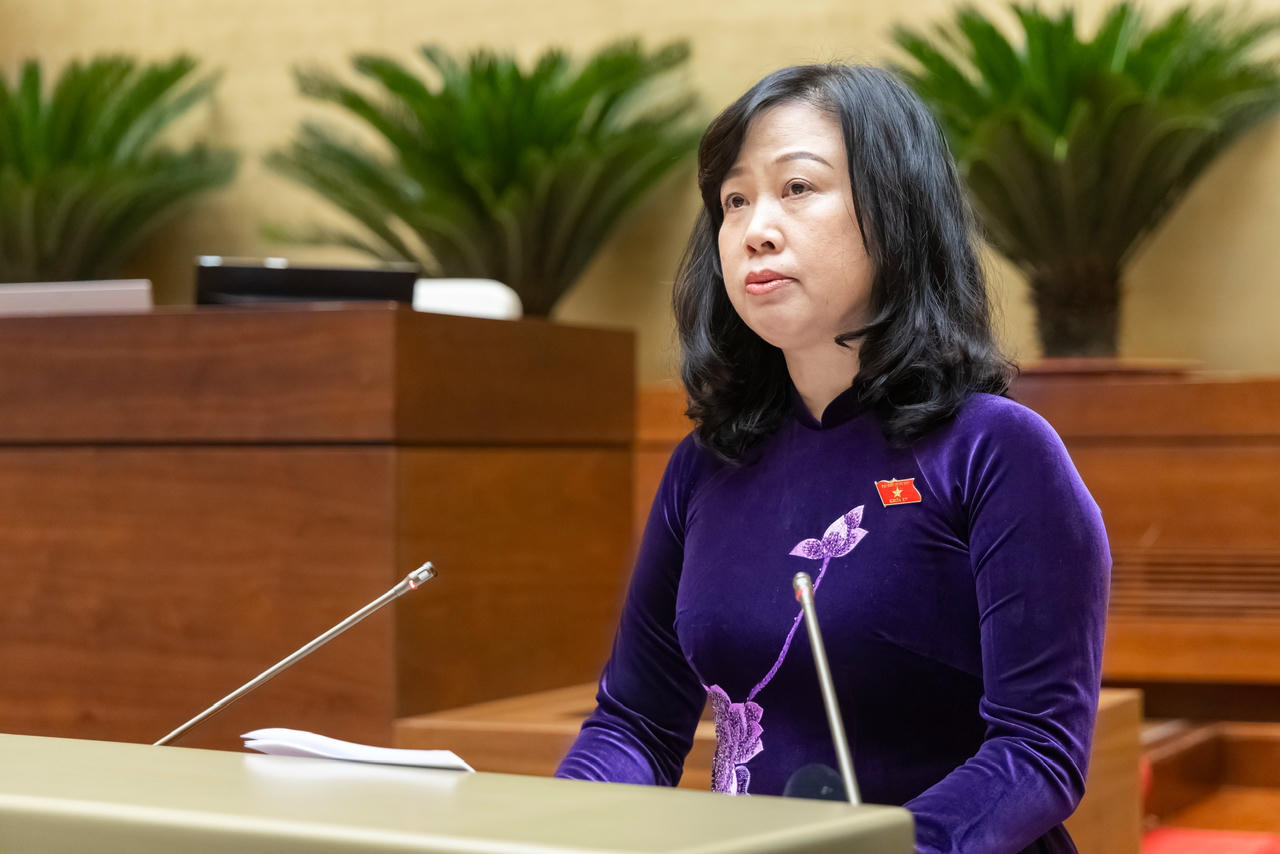 Bộ trưởng Bộ Y tế Đào Hồng Lan báo cáo trước Quốc hội (Ảnh: Quang Vinh)