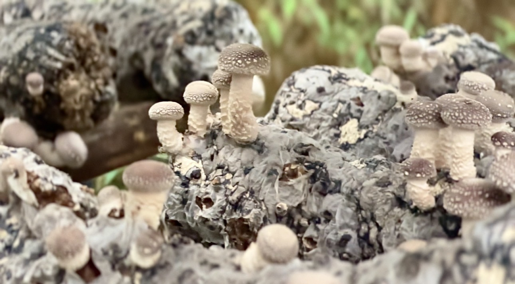 Những cây nấm hương non được trồng cẩn thận.