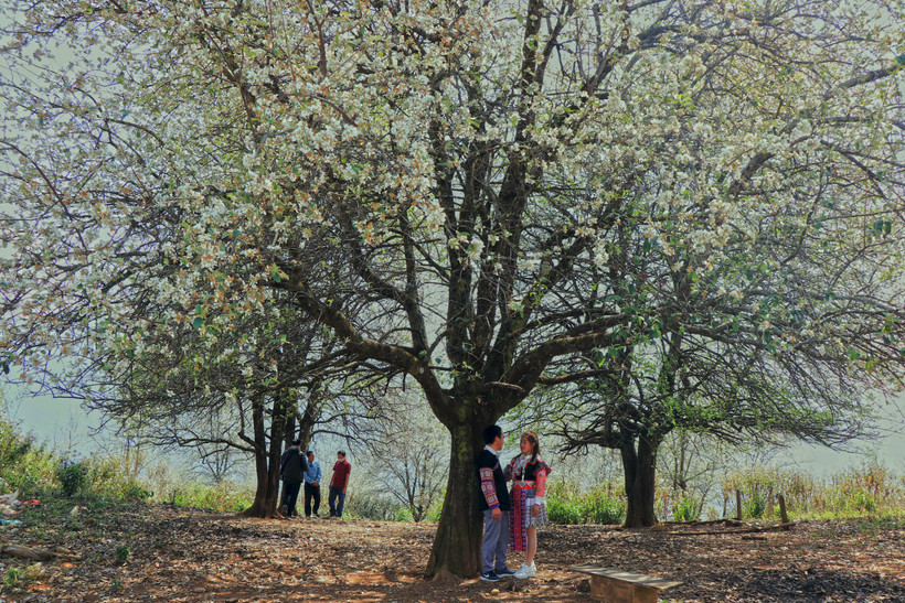 Mùa hoa, bản trở nên rộn ràng. Du khách khắp nơi nườm nượp kéo về, hòa cùng người dân trong lễ hội hoa sơn tra, cùng múa khèn, ném pao, giã bánh dày, thổi sáo. Giữa làn mây trắng bồng bềnh, tiếng khèn Mông vang vọng như dẫn lối người ta lạc vào miền cổ tích.