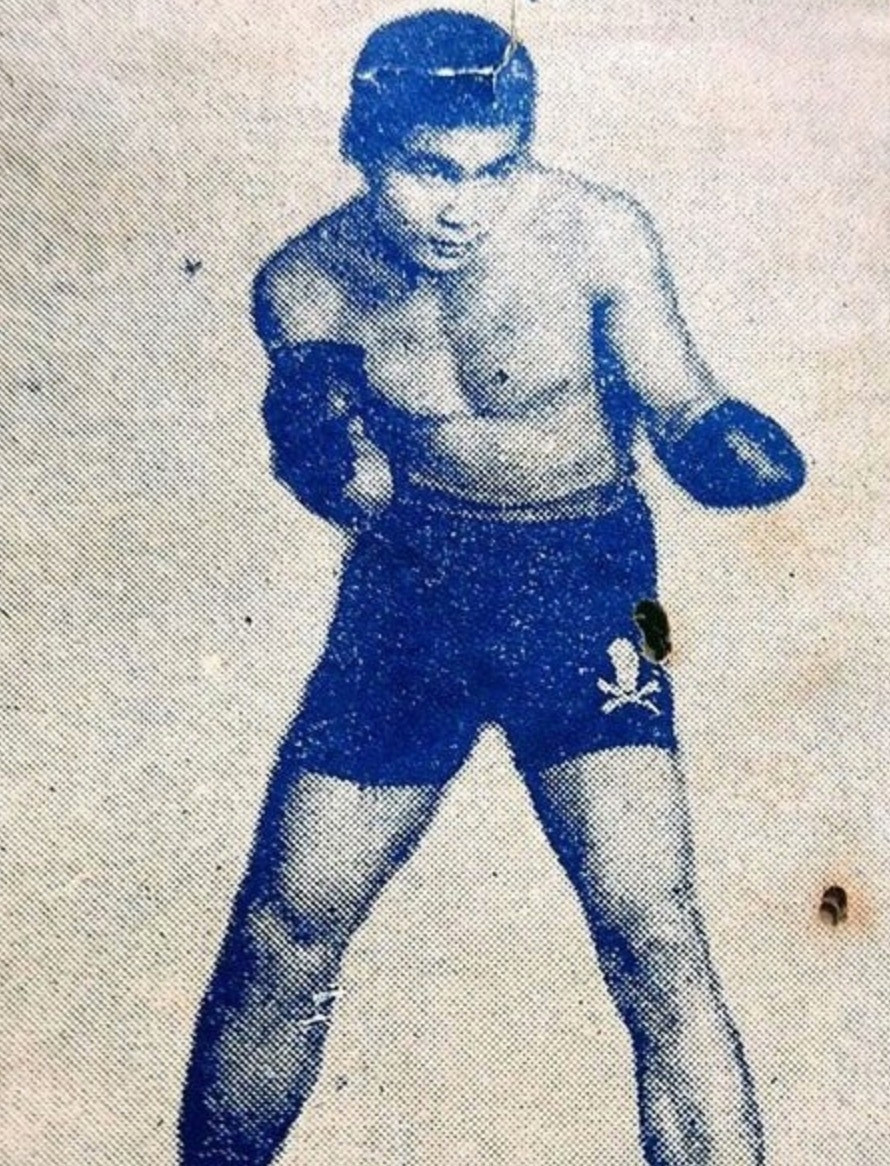 Lý Huỳnh (ngoài cùng bên phải) thời trẻ trên đài đấu quyền Anh.