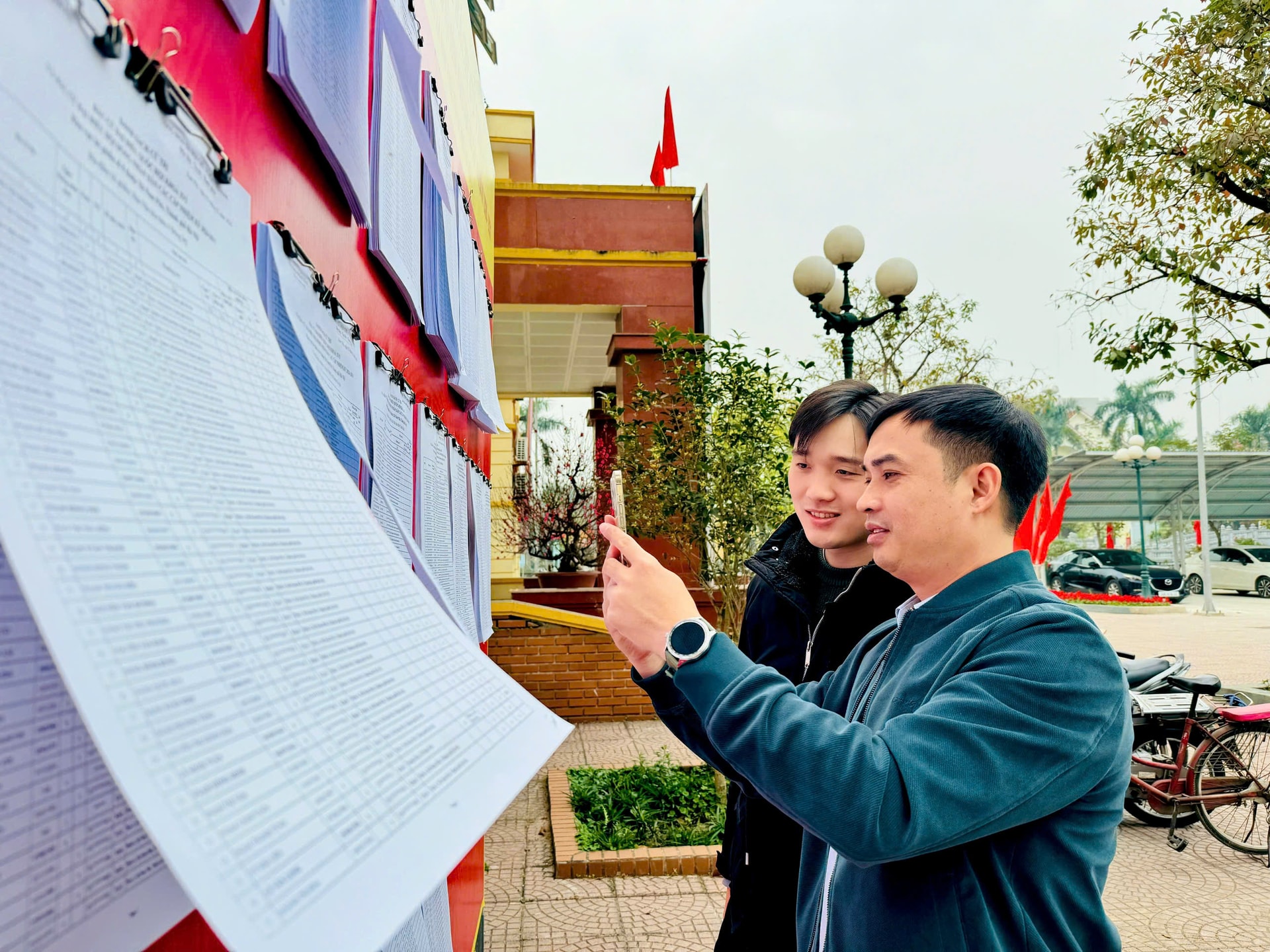 Danh sách cử tri được niêm yết công khai tại trụ sở Đảng ủy, HĐND, Ủy ban MTTQ xã; trụ sở UBND xã, nhà văn hóa các thôn và các điểm bỏ phiếu, bảo đảm điều kiện thuận tiện cho người dân tra cứu. Hệ thống bảng niêm yết được chuẩn hóa về quy cách, bố trí đồng bộ, bảo đảm tính trang trọng và dễ theo dõi.