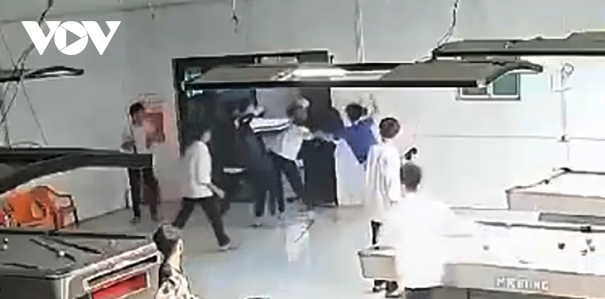 Nhóm thanh niên xô xát nhau tại quán bi-a khiến nam sinh N.H.D. phải nhập viện. (ảnh cắt từ video).