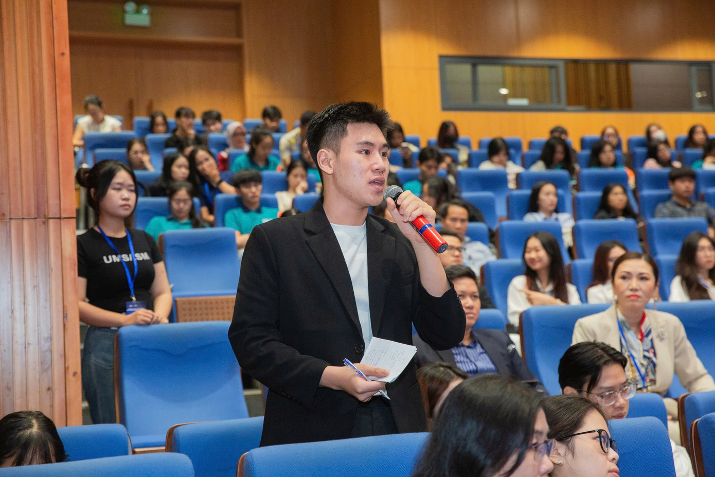An Khang đặt câu hỏi cho tổng biên tập tại chí Australasian Marketing Journal.