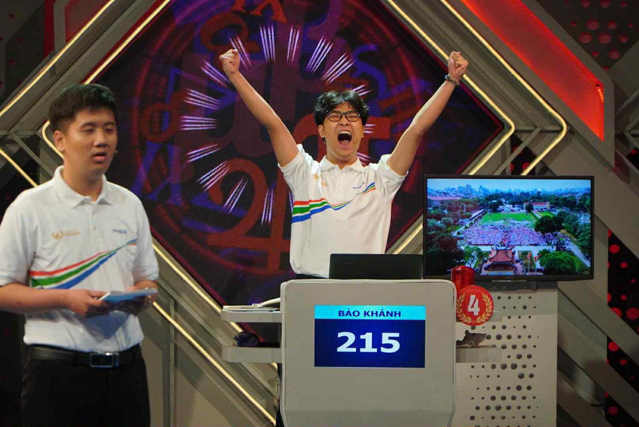 Với 215 điểm, Trần Bùi Bảo Khánh, Trường THPT Chuyên Hà Nội – Amsterdam (Hà Nội) đã trở thành tân quán quân Đường lên đỉnh Olympia. Ảnh: Anh Đức