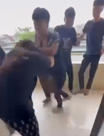 Trong clip, một nam sinh mặc áo đen liên tục nắm tóc, ghì đầu, đấm vào mặt bạn nữ. Sự việc diễn ra trước mặt nhiều học sinh nhưng không ai can ngăn, thậm chí có bạn còn reo hò, quay lại clip.