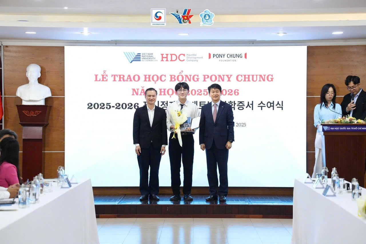 Lê Quốc Duy vinh dự nhận học bổng Pony Chung của Hàn Quốc, năm 2025 - 2026.