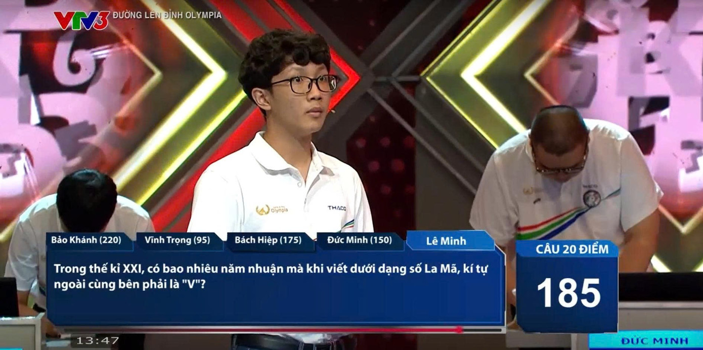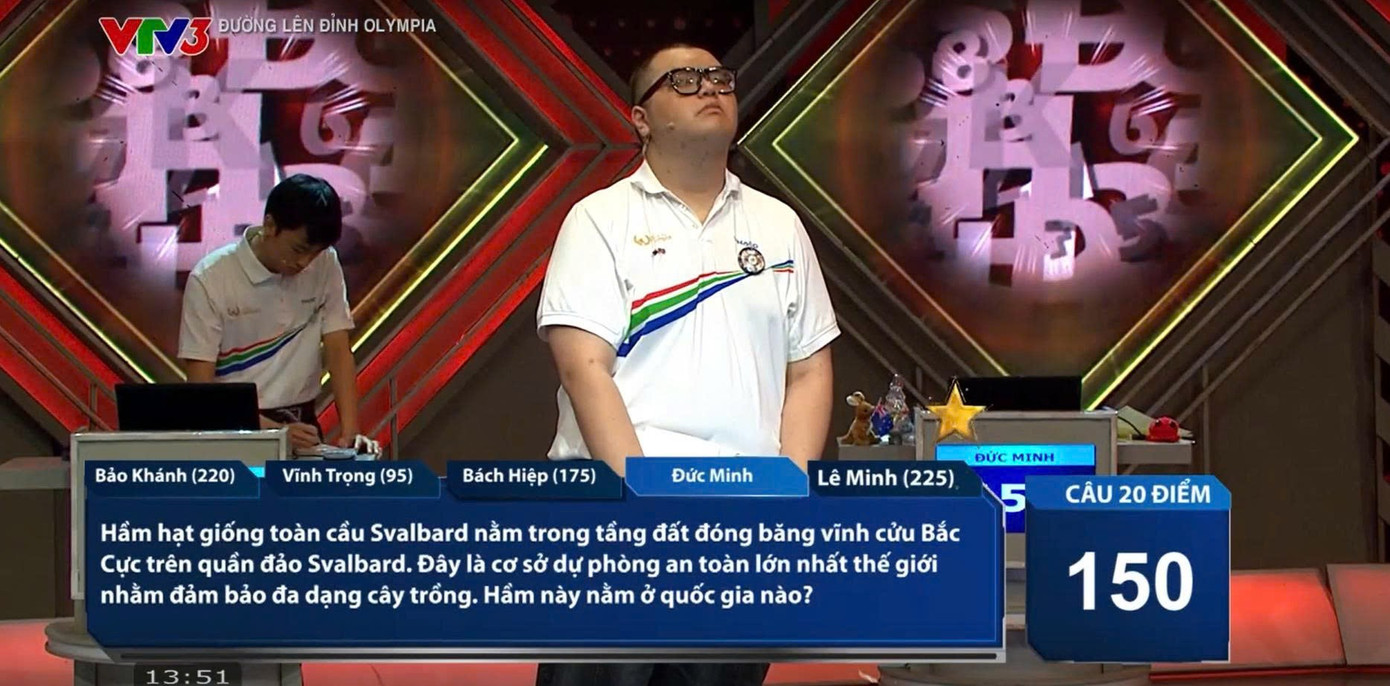 Lê Minh chọn gói câu hỏi 30-20-20 điểm. Nam sinh đã hoàn thành xuất sắc phần thi khi đưa ra đáp án chính xác ở cả ba câu hỏi. Lê Minh đã vươn lên dẫn đầu đoàn leo núi với 225 điểm.