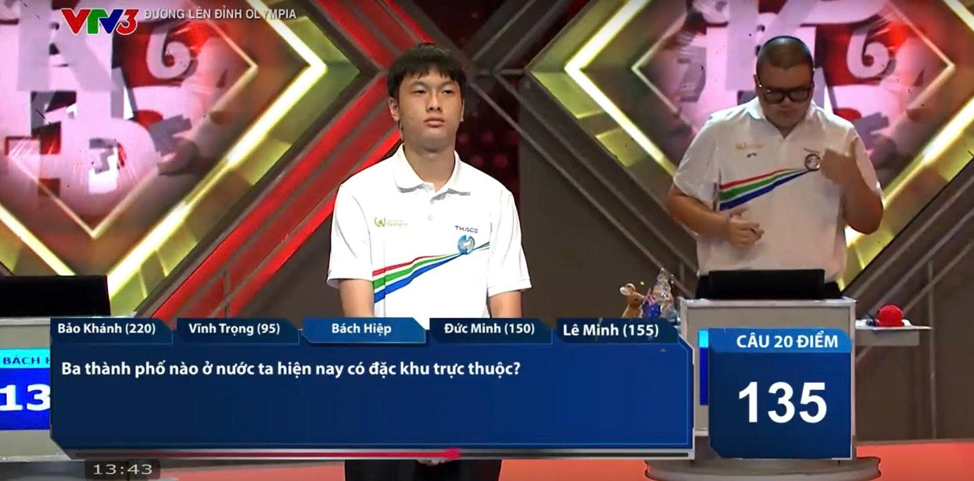 Bách Hiệp lựa chọn 3 câu 20 điểm. Sau hai câu hỏi đầu tiên, nam sinh đánh mất 40 điểm, 20 điểm ở câu hỏi đầu tiên vào tay Lê Minh và 20 điểm tiếp theo dành cho Bảo Khánh. Ở câu hỏi cuối cùng, nam sinh lựa chọn ngôi sao hy vọng và giành được 40 điểm. Kết thúc phần thi, Bách Hiệp có 175 điểm.