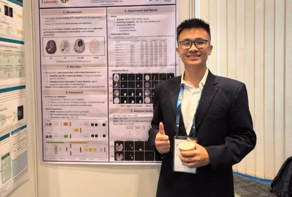 Nam sinh lựa chọn hướng nghiên cứu về AI trong y tế, sử dụng các phương pháp học máy có thể làm việc với dữ liệu hạn chế, nhiễu và không hoàn hảo, kết hợp nhiều nguồn dữ liệu như hình ảnh và dữ liệu sinh học để hỗ trợ chẩn đoán sớm bệnh.