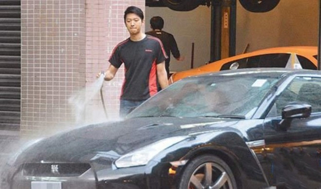 Cao Quân Hiền đi rửa xe để mưu sinh.