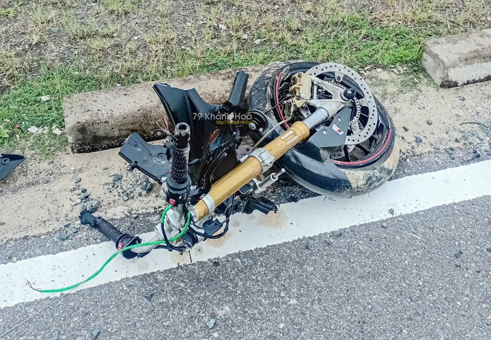 Chiếc mô tô gãy nát sau va chạm. Ảnh: KH