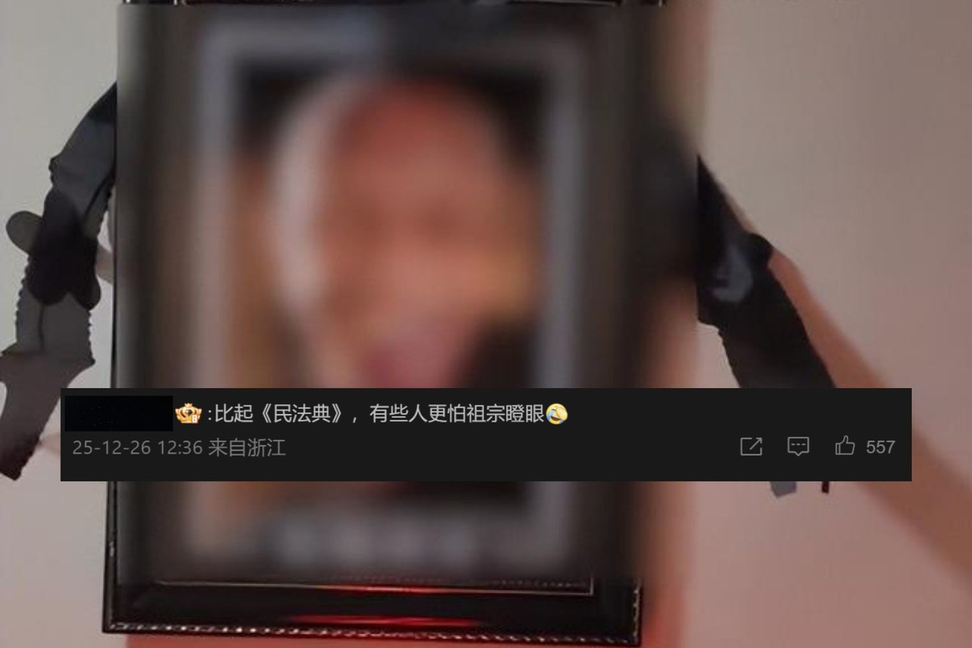 Netizen Trung Quốc hài hước bình luận: "So với luật, có những người sợ bị tổ tiên người khác trừng mắt nhìn hơn".