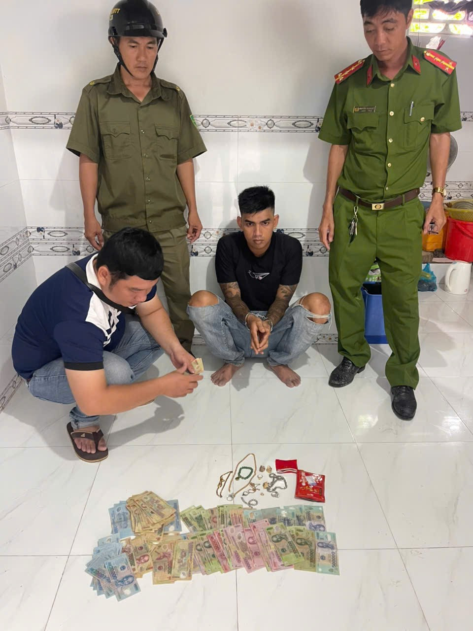 Trước đó, ngày 30/10, chị P.T.T (SN 1981, trú khóm 2, phường Cái Vồn) đến trụ sở Công an phường trình báo về việc bị mất trộm tài sản, gồm: 15 triệu đồng, 01 sợi dây chuyền vàng, 02 chiếc bông tai loại vàng 18K, 01 chiếc nhẫn vàng loại 15K, tổng giá trị tài sản trên 40 triệu đồng.