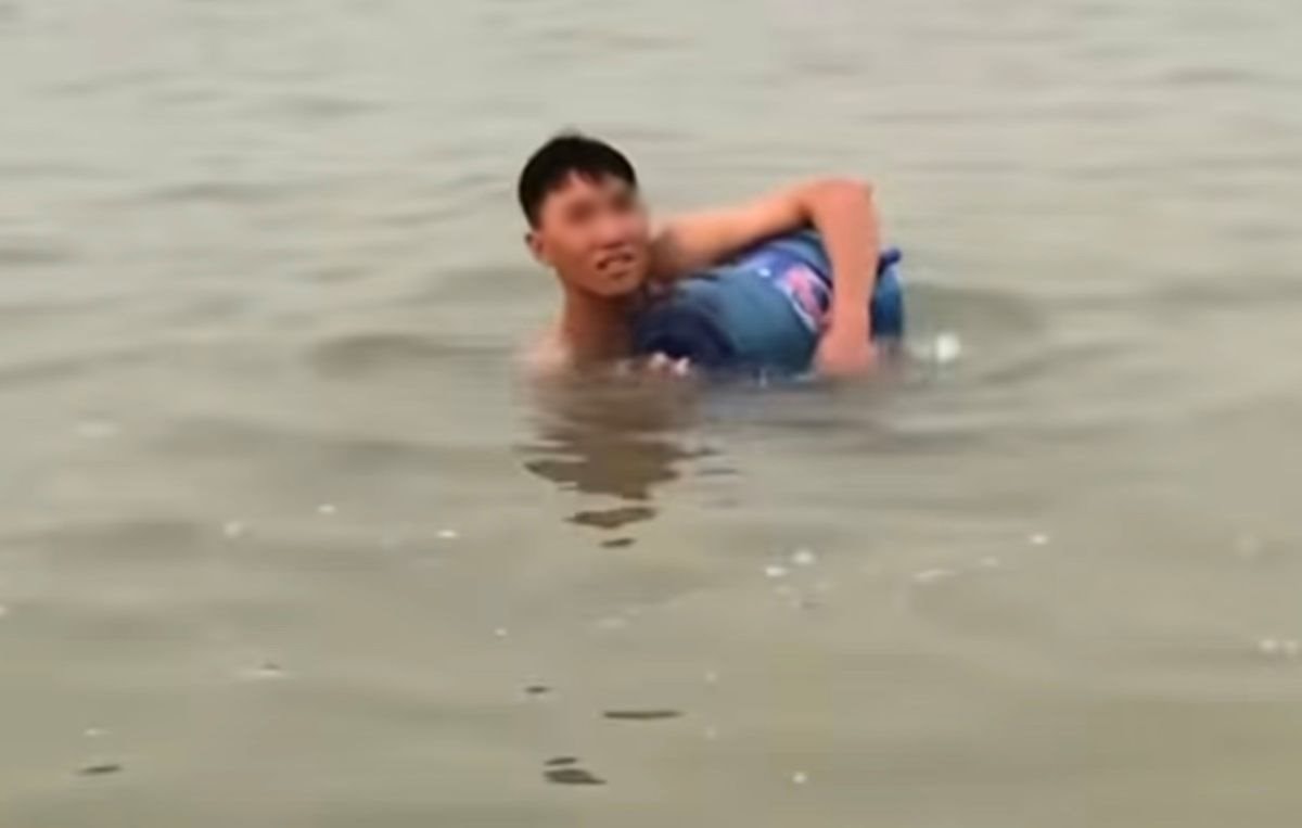 Người này bị dòng nước đẩy đi xa khu vực ban đầu xuống tắm cả trăm mét. Khi đang chới vơi giữa dòng thì có người phát hiện, ra đưa lên thuyền.