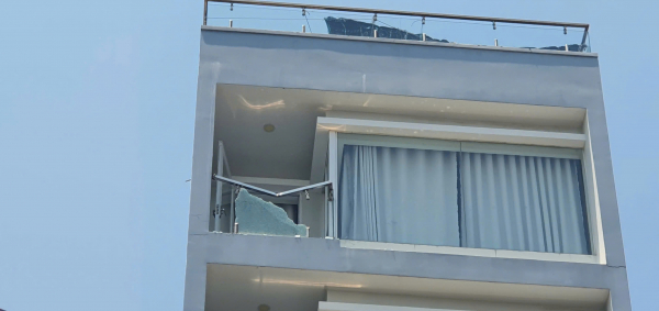 Tại hiện trường, một phần cửa kính ban công tầng 7 căn hộ cho thuê bị vỡ rơi mảnh kính xuống bên dưới, một số dây cáp viễn thông bị đứt, kính chắn gió xe ô tô du lịch bị rạn nứt.