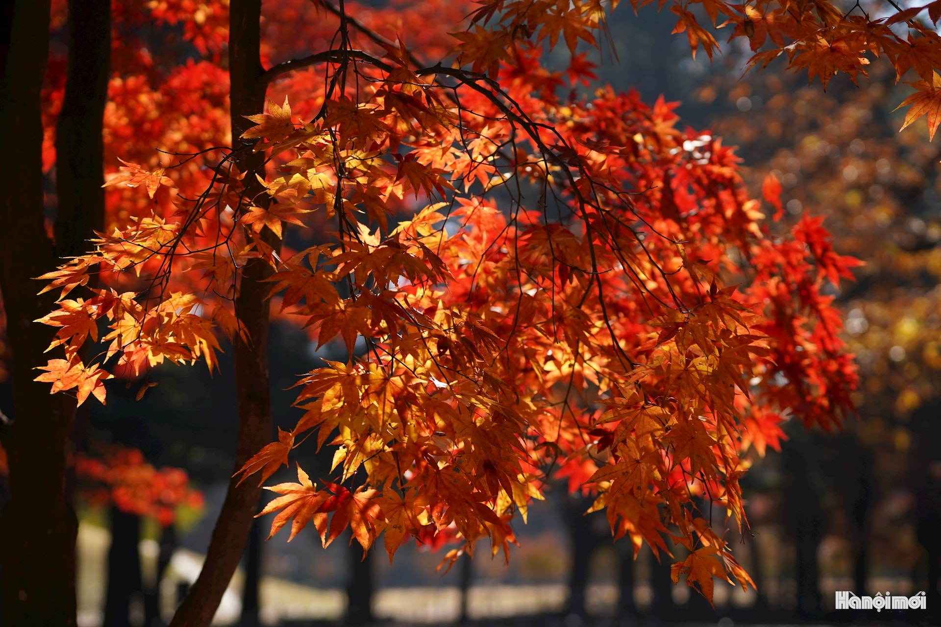 Những tán lá phong khoe sắc đỏ rực trong nắng thu.