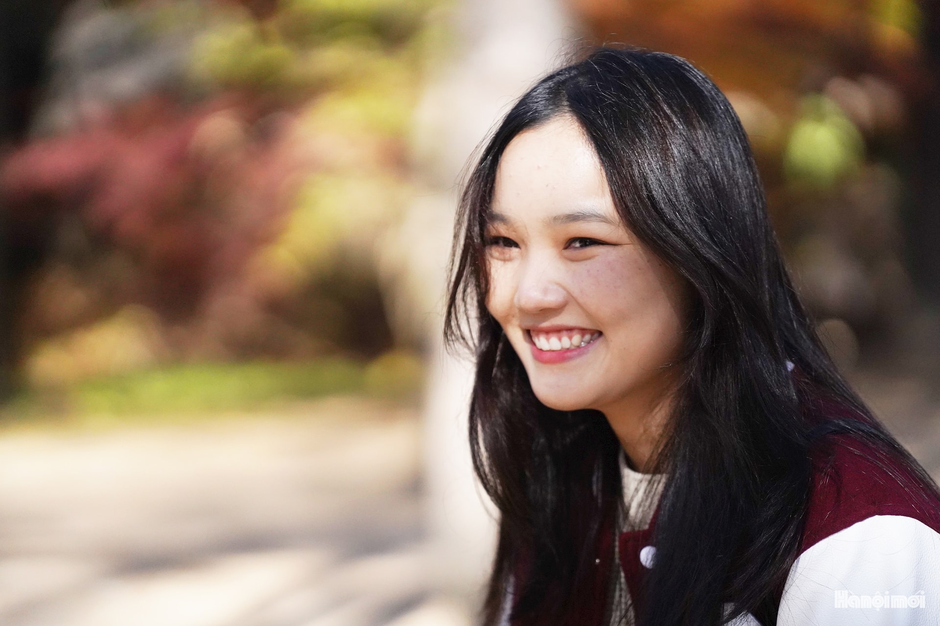 Nụ cười tỏa nắng mùa thu của cô gái sinh viên Hàn Quốc.