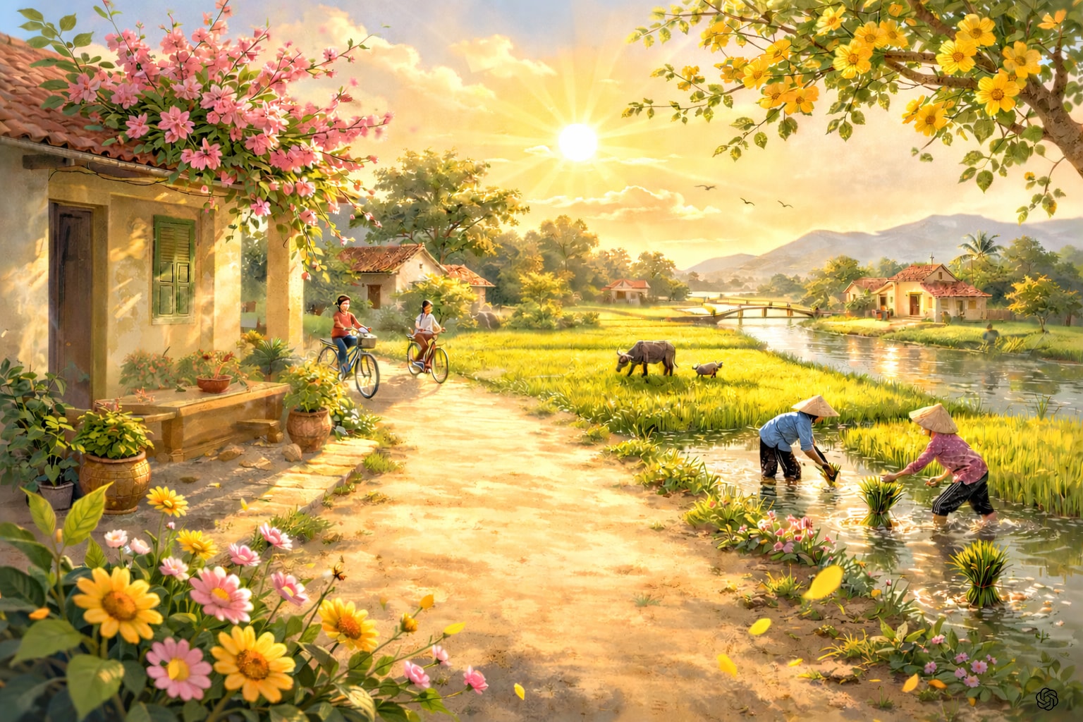 Bàn tay anh, tay chị, da đã bớt nứt nẻ, bớt cảm giác đau của những ngày đông. Đường phố, đường làng đã bớt đi sắc đậm của những chiếc áo gió, áo ấm, thay vào đó, là những màu sắc tươi sáng, rực rỡ của những bộ trang phục trang trọng của những người đi lễ chùa, lễ nhà thờ, du xuân, chúc Tết. Người lớn tuổi đã có thể đón những làn nước mát thay cho độ lạnh lẽo của nước giá mùa đông.