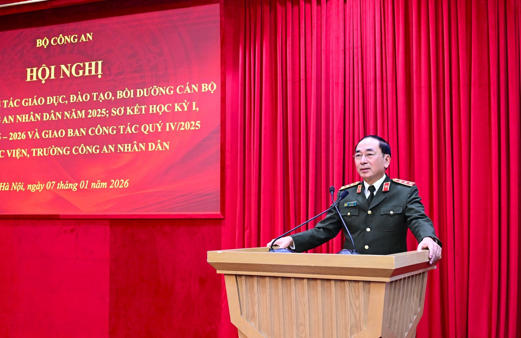Chiều 07/01/2026, tại Hà Nội, Thượng tướng Trần Quốc Tỏ, Thứ trưởng Bộ Công an, đã chủ trì Hội nghị Tổng kết công tác giáo dục, đào tạo trong Công an nhân dân (CAND) năm 2025 và triển khai phương hướng nhiệm vụ năm 2026. Hội nghị tập trung đánh giá toàn diện các kết quả đạt được, đồng thời đề xuất giải pháp nâng cao hiệu quả đào tạo gắn liền với thực tiễn chiến đấu của lực lượng.