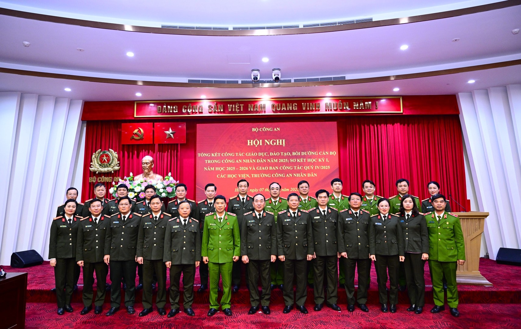 Bên cạnh đó, công tác tuyển sinh và thực hiện chỉ tiêu đào tạo được đảm bảo đúng quy trình và mục tiêu phê duyệt. Bộ đã tiến hành tổng kết Đề án 04 về đổi mới tuyển sinh đại học chính quy giai đoạn 2022 - 2025, từ đó đề xuất phương hướng triển khai cho giai đoạn tiếp theo 2026 - 2030. Công tác nghiên cứu khoa học, biên soạn giáo trình cũng được đẩy mạnh nhằm đáp ứng yêu cầu triển khai mô hình Công an 3 cấp.