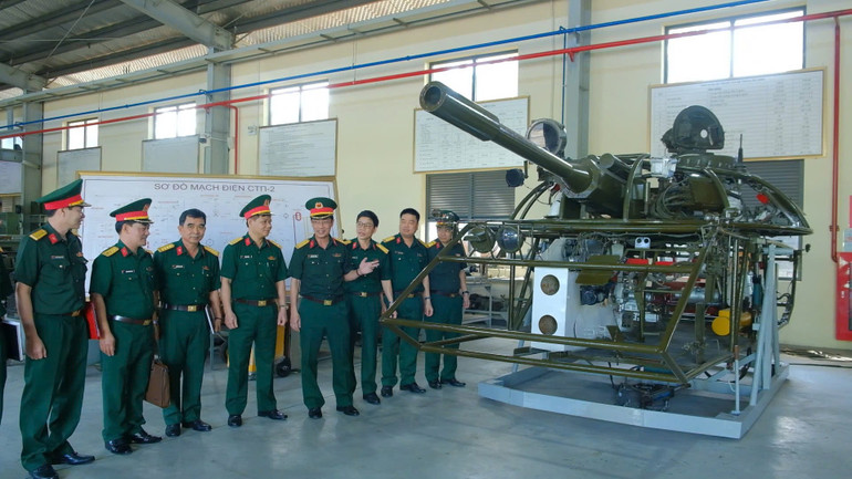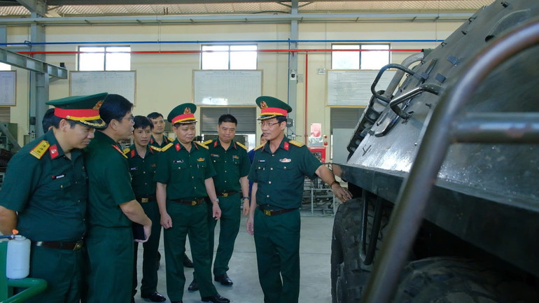 Thiếu tướng Huỳnh Tấn Hùng, Phó Chủ nhiệm Tổng cục Hậu cần-Kỹ thuật triển khai nội dung kiểm tra tại Trường Sĩ quan Kỹ thuật quân sự.