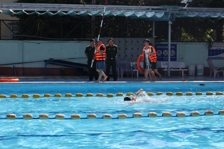 Thiếu tướng Huỳnh Tấn Hùng kiểm tra giờ huấn luyện thực hành của học viên Lào.