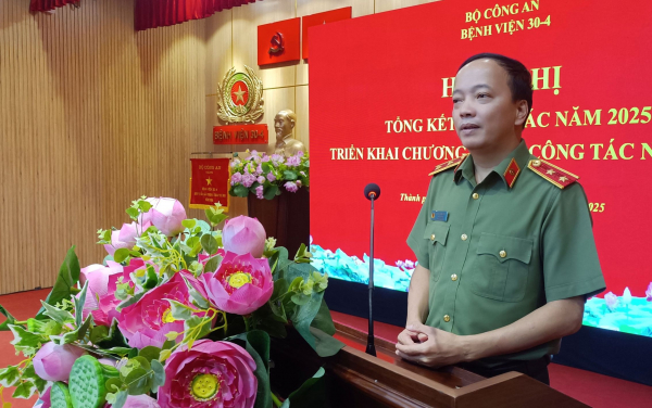 Tại Hội nghị, Thứ trưởng Đặng Hồng Đức đã ghi nhận, biểu dương những nỗ lực, cố gắng của Đảng ủy, Ban Giám đốc Bệnh viện 30-4 cùng toàn thể cán bộ, y, bác sĩ, nhân viên trong suốt thời gian qua. Dưới sự lãnh đạo của Đảng ủy Công an Trung ương, lãnh đạo Bộ Công an, Bệnh viện 30-4 đã bám sát Nghị quyết, chương trình công tác năm 2025; phát huy truyền thống đoàn kết, chủ động, sáng tạo, từng bước khắc phục khó khăn, hoàn thành tốt nhiều nhiệm vụ được giao, đóng góp tích cực vào sự nghiệp bảo vệ an ninh quốc gia, bảo đảm trật tự, an toàn xã hội.