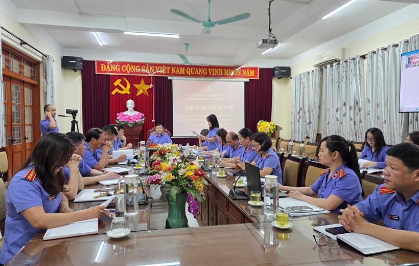 Tham dự Hội nghị chuyên đề có các đồng chí Trưởng phòng, Phó Trưởng phòng 9, 10 và các đồng chí Viện trưởng, Phó Viện trưởng VKSND tại 9 điểm cầu của VKSND khu vực.