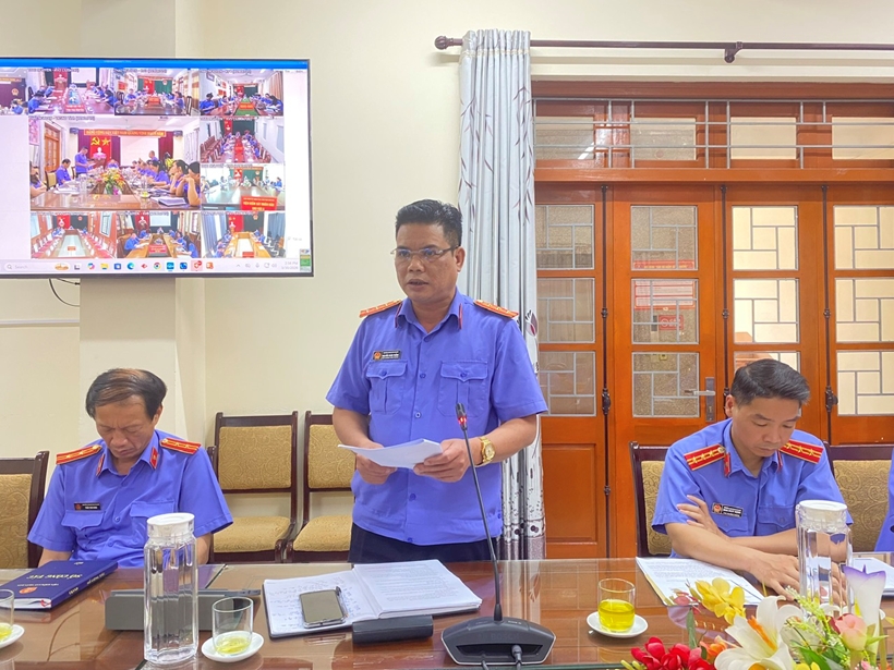 Đồng chí Hoàng Đức Thuấn, Phó Viện trưởng VKSND tỉnh Thái Nguyên, chủ trì hội nghị.