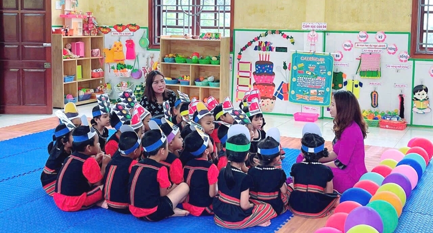 Cô và trò Trường Mầm non Nhâm (xã A Lưới 2)