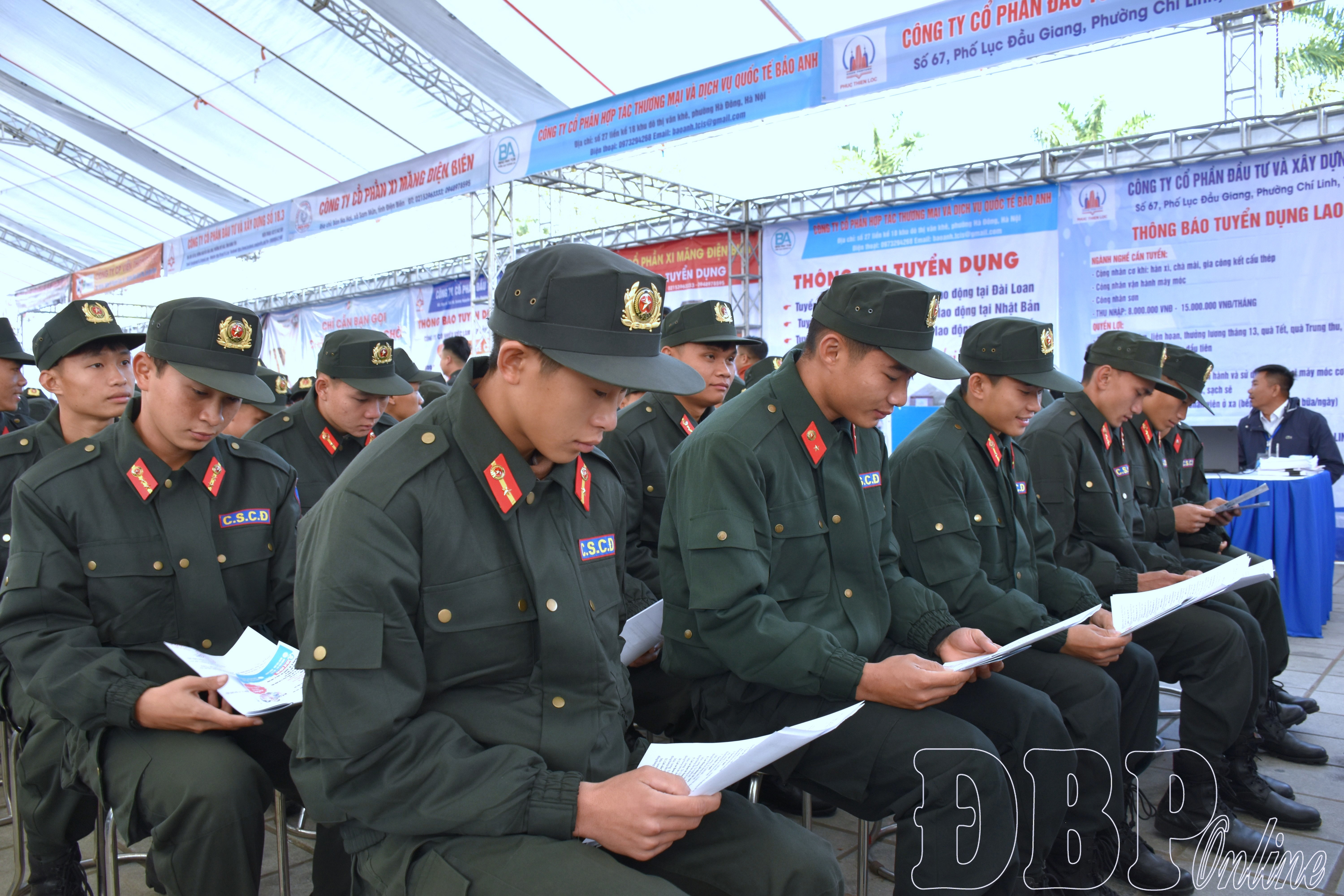 Chiến sĩ nghĩa vụ tham gia Ngày hội Việc làm tỉnh tìm cơ hội việc làm sau khi xuất ngũ.