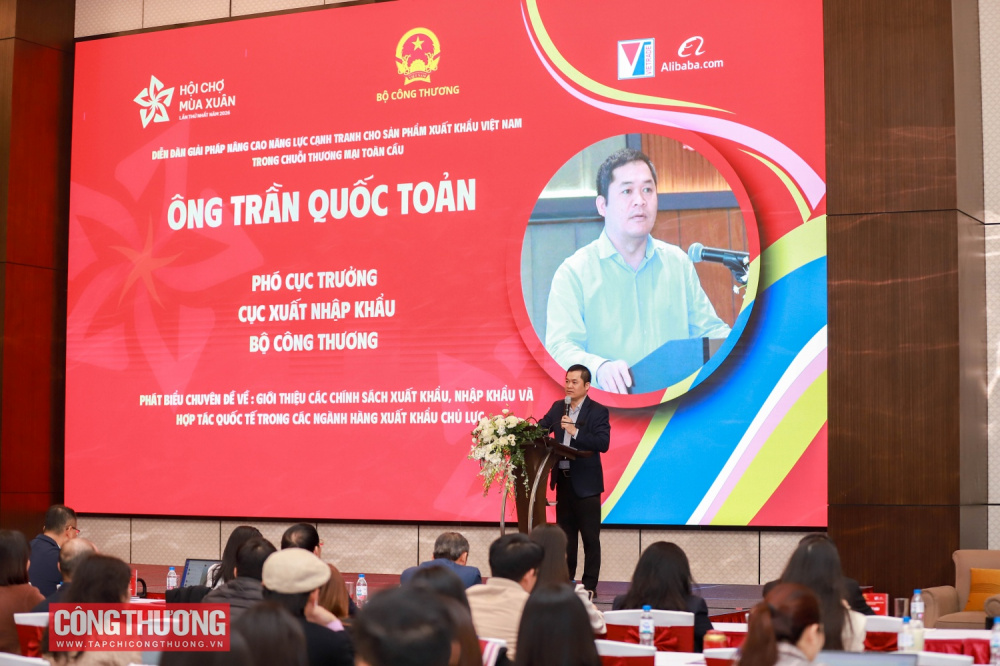 Phát biểu chuyên đề tại Diễn đàn, Phó Cục trưởng Cục Xúc tiến thương mại Trần Quốc Toản thông tin tổng quan về kết quả xuất nhập khẩu năm 2025; hệ thống chính sách xuất nhập khẩu; hợp tác quốc tế và quy tắc xuất xứ và một số giải pháp và định hướng thời gian tới trong công tác hoàn thiện thể chế, cải cách hành chính, hỗ trợ doanh nghiệp; chuyển đổi xanh.