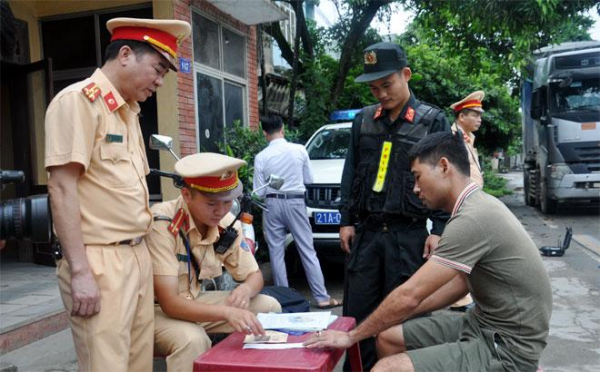 Lực lượng CSGT kiểm tra việc chấp hành quy định về trật tự, an toàn giao thông của người dân.
