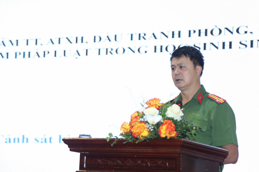 Trong chuyên đề được trình bày tại hội nghị, Thượng tá Lâm Tiến Dũng, cán bộ Cục Cảnh sát Hình sự, Bộ Công an nêu các nguy cơ vi phạm pháp luật trong học sinh, sinh viên cùng công tác bảo đảm trật tự, an toàn xã hội, đấu tranh phòng, chống tội phạm, vi phạm pháp luật trong học sinh, sinh viên.