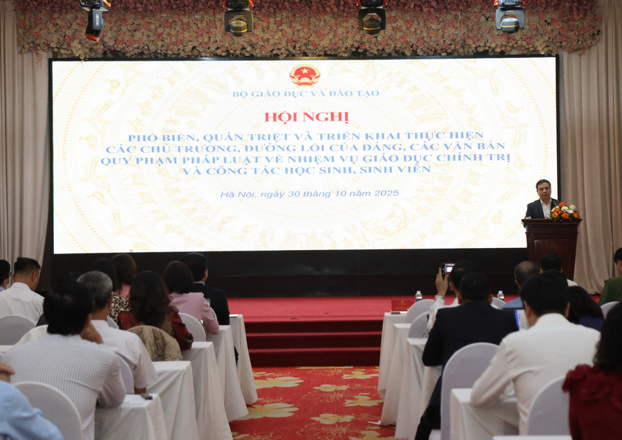 Ngày 30/10, Bộ GD&ĐT tổ chức hội nghị phổ biến, quán triệt và triển khai các chủ trương, đường lối của Đảng, các văn bản quy phạm pháp luật về nhiệm vụ giáo dục chính trị và công tác học sinh, sinh viên.