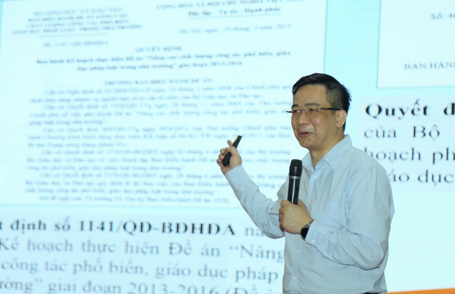 Tham luận tại hội nghị, ông Nguyễn Như Hà - Phó Vụ trưởng Vụ Pháp chế (Bộ GD&ĐT) phân tích các bài học kinh nghiệm quốc tế, đánh giá thực trạng tại Việt Nam và đề xuất một số giải pháp đột phá, khả thi nhằm tăng cường các giải pháp phổ biến, tuyên truyền, giáo dục pháp luật cho HSSV.