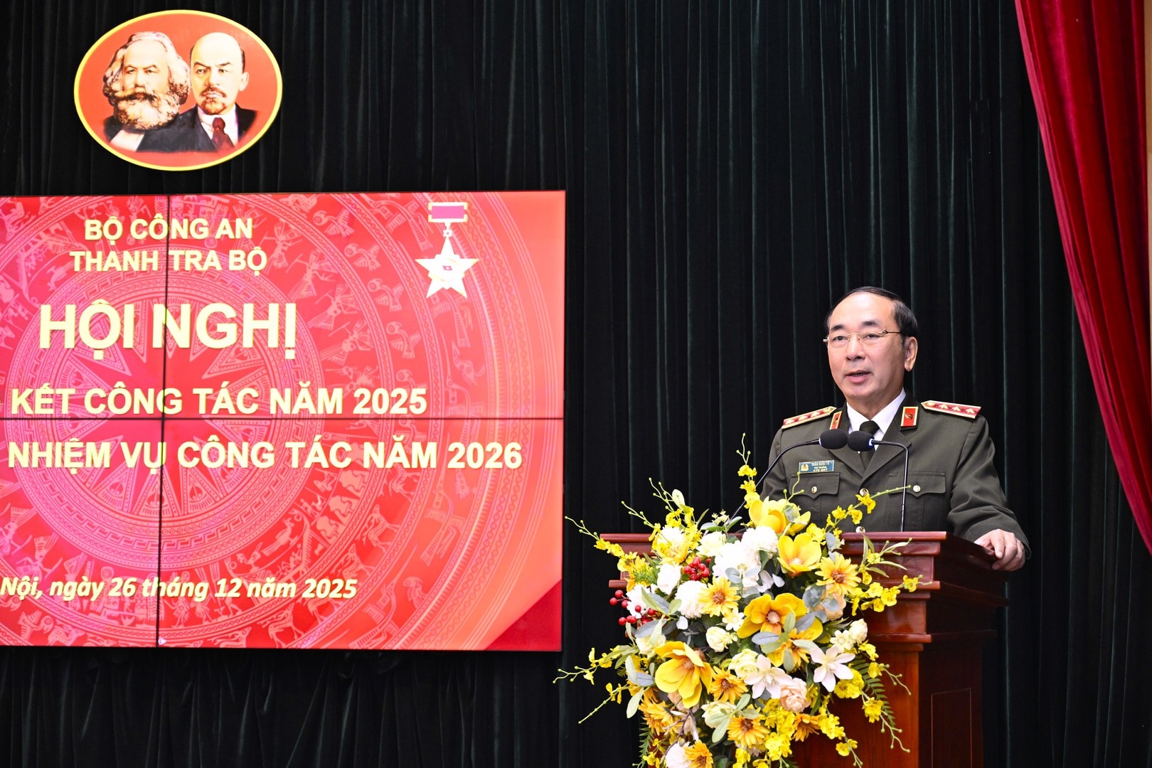 Đồng tình với những nhiệm vụ mà Thanh tra Bộ đề ra năm 2026, Thứ trưởng Trần Quốc Tỏ đề nghị, Đảng ủy, lãnh đạo Thanh tra Bộ tiếp tục làm tốt công tác xây dựng Đảng gắn với xây dựng lực lượng; tập trung tham mưu Đảng ủy Công an Trung ương tiếp tục lãnh đạo, chỉ đạo toàn lực lượng thực hiện nghiêm túc, bảo đảm hiệu quả, thực chất Nghị quyết số 18 ngày 15/12/2023 của Đảng ủy Công an Trung ương về “Tăng cường sự lãnh đạo của Đảng đối với công tác thanh tra trong Công an nhân dân”. Công tác lãnh đạo, chỉ đạo, tổ chức thực hiện nhiệm vụ phải phát huy nguyên tắc tập trung dân chủ, nêu cao tinh thần tự phê bình và phê bình, phát huy trí tuệ tập thể, giữ gìn sự đoàn kết, thống nhất trong Đảng ủy, lãnh đạo và cán bộ, chiến sĩ trong đơn vị; phát huy tốt trách nhiệm nêu gương, trước hết là các đồng chí trong Đảng ủy, lãnh đạo Cục và cấp ủy, lãnh đạo các đơn vị.