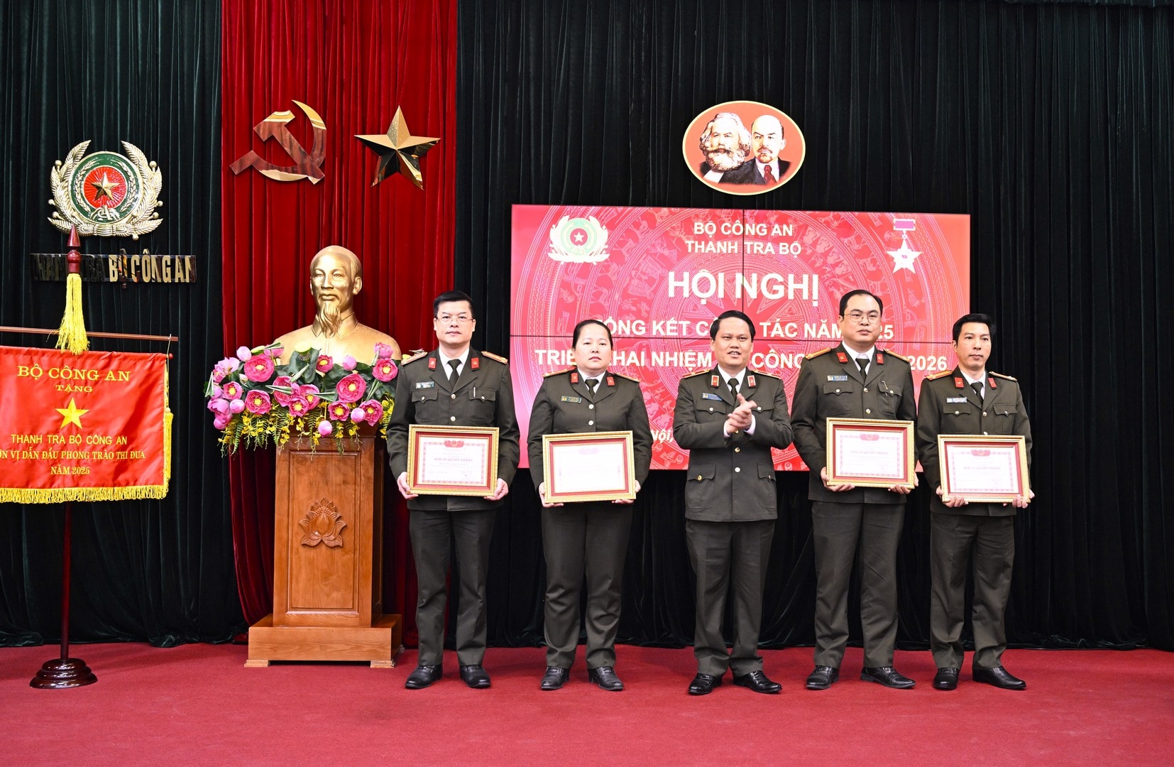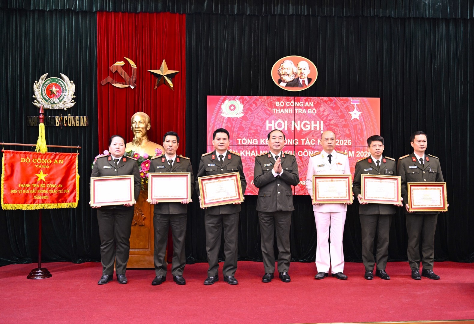 Tổng kết phong trào thi đua “Vì an ninh Tổ quốc” năm 2025, Thanh tra Bộ vinh dự được Bộ Công an tặng “Cờ thi đua xuất sắc”; nhiều lượt tập thể, cá nhân được các cấp khen thưởng. Đặc biệt, ngày 10/12/2025, Chủ tịch nước đã ký Quyết định số 2388 phong tặng danh hiệu “Anh hùng Lực lượng vũ trang nhân dân” cho Tập thể Thanh tra Bộ Công an.
