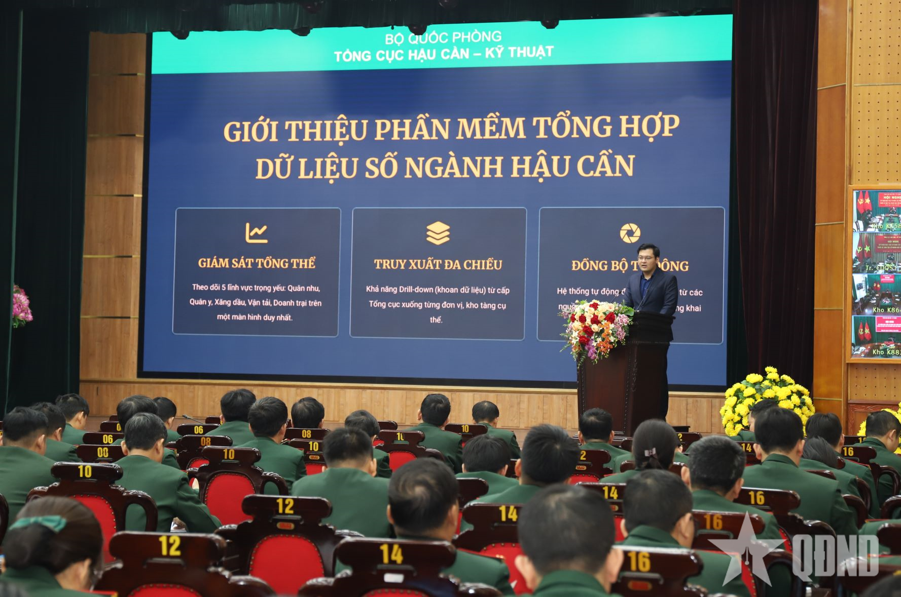 Cán bộ Tổng công ty Giải pháp doanh nghiệp Viettel giới thiệu phần mềm tổng hợp dữ liệu số ngành Hậu cần Quân đội.