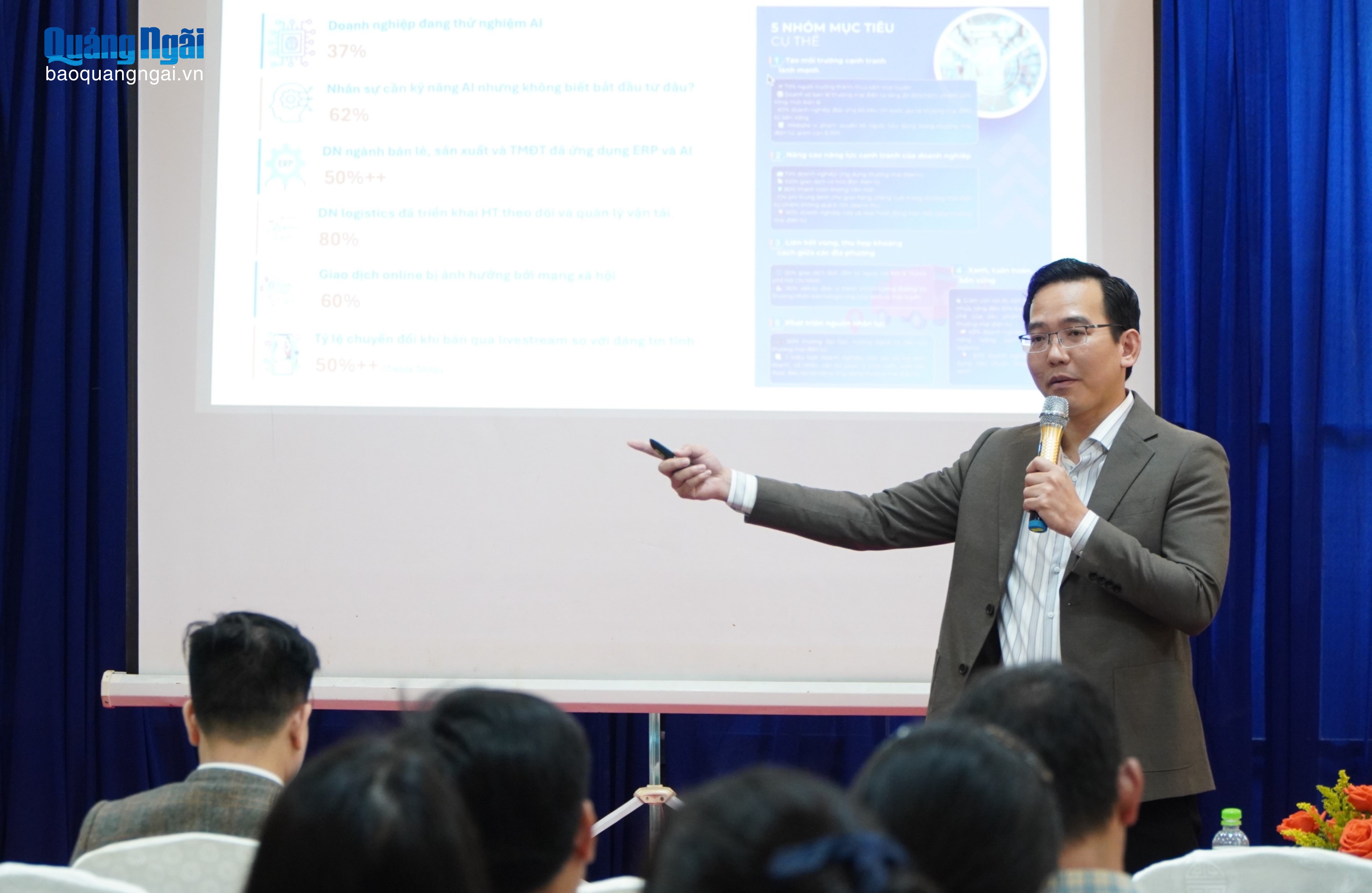 Báo cáo viên chia sẻ kiến thức về thương mại điện tử.